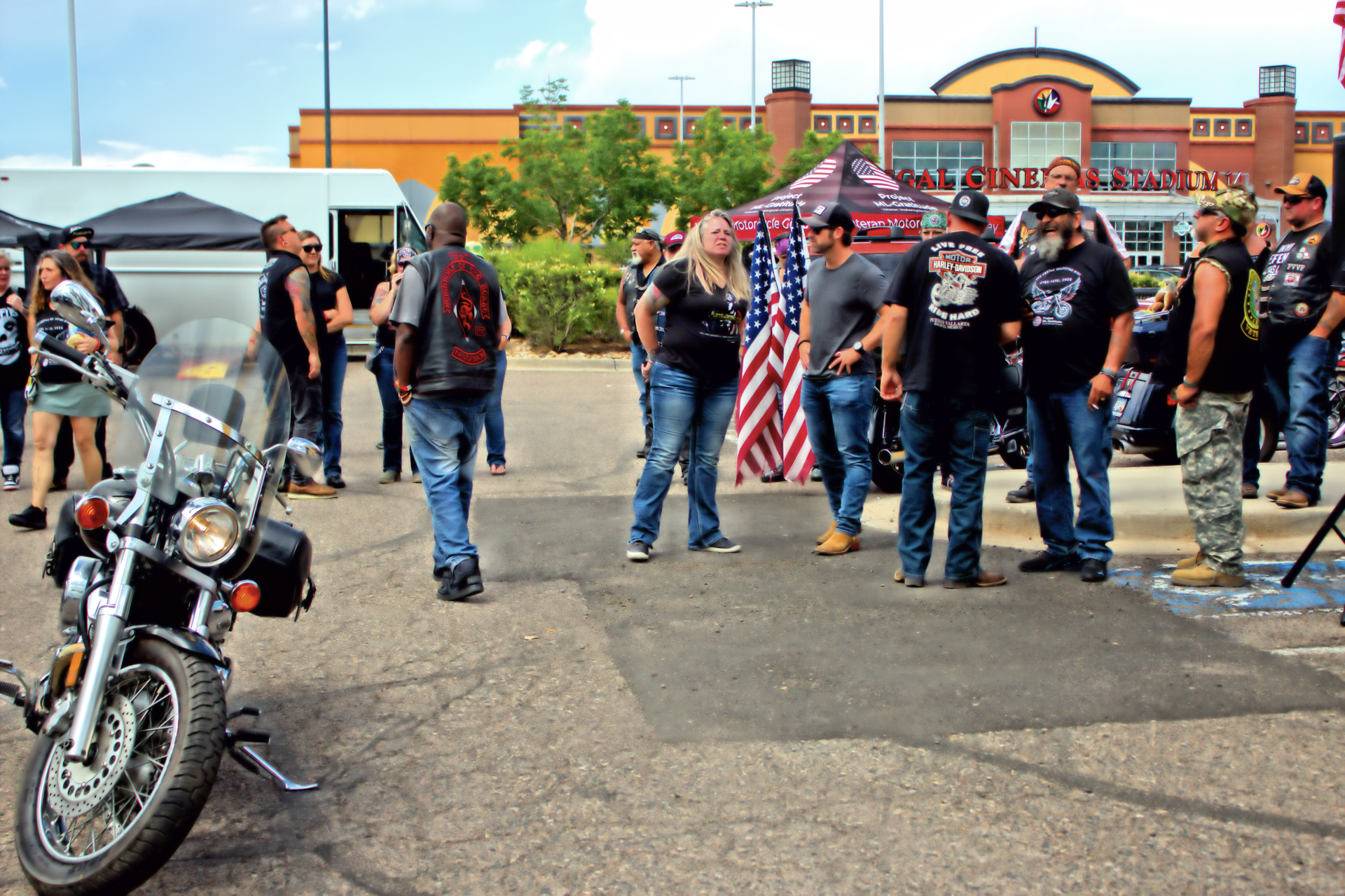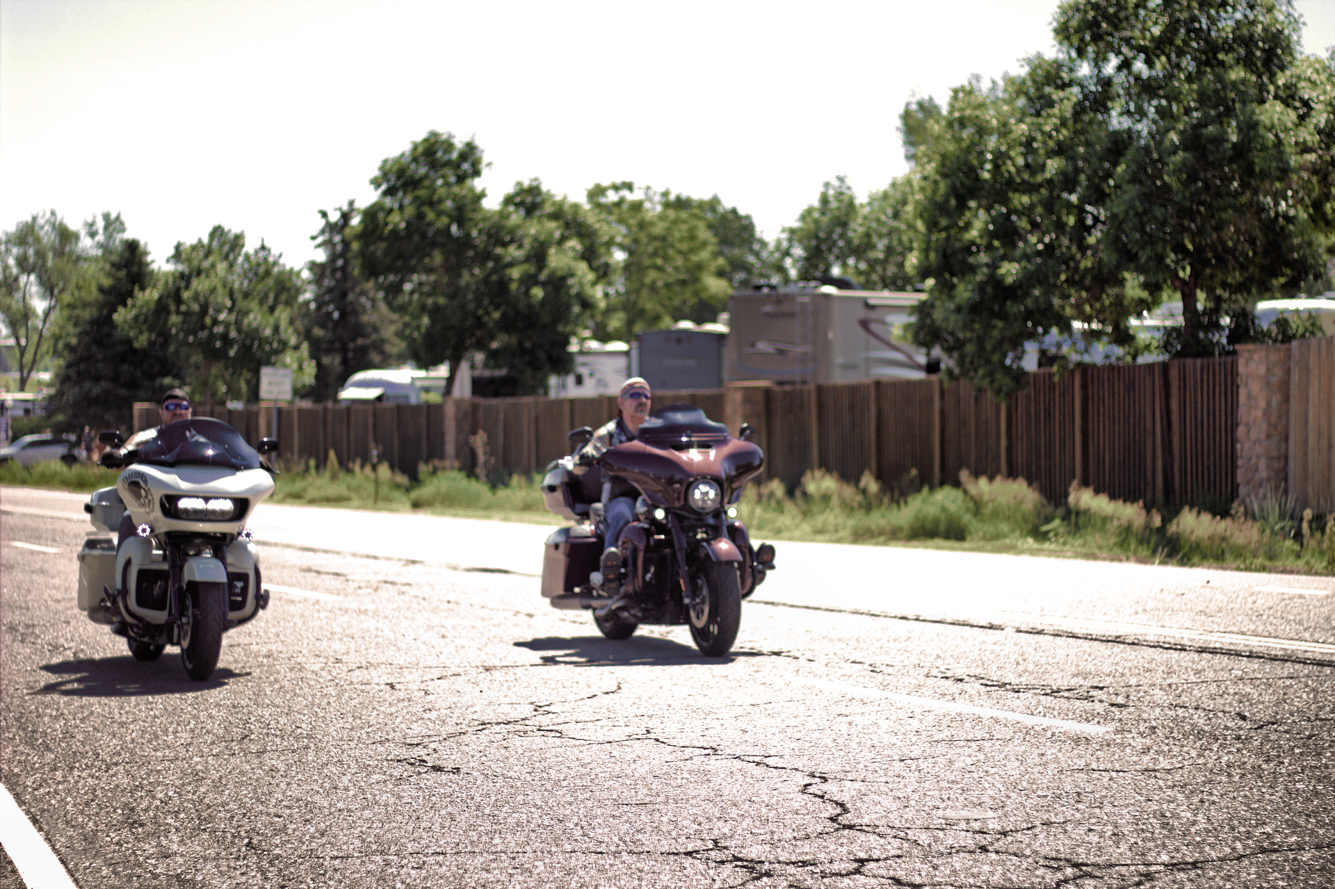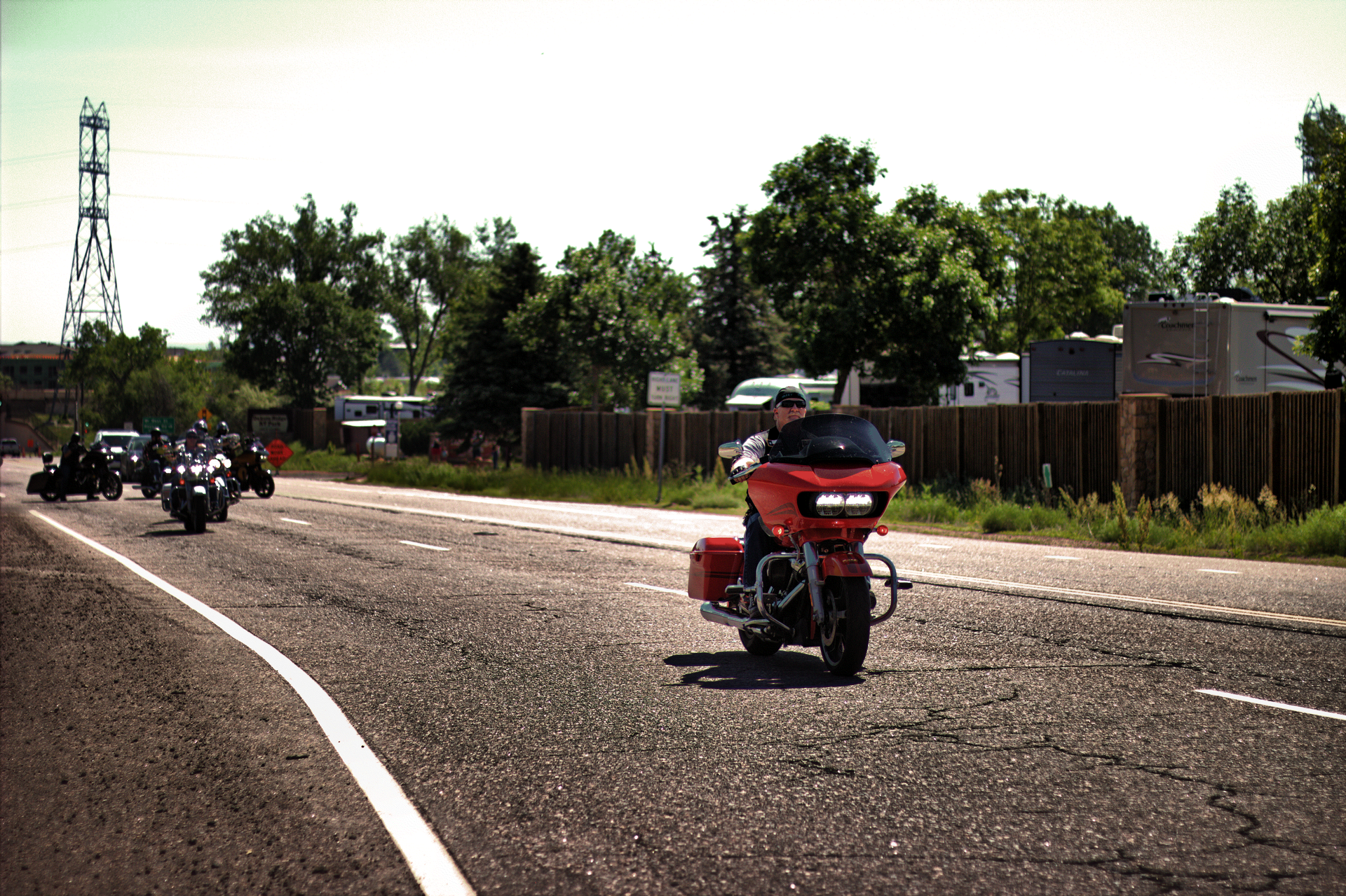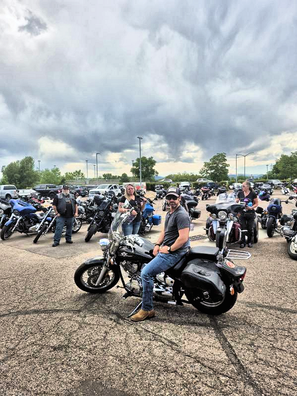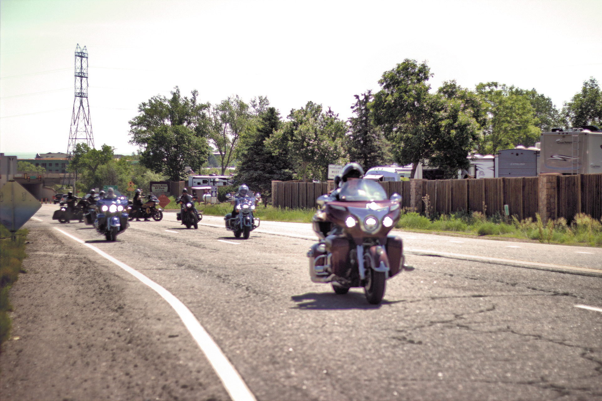 It was a scorcher of a day! Especially for mid-June where the city temperature threatened 100 degrees. But, it was a beautiful day for our 3rd Annual Gratitude Ride up through the eastern slope of the Rockies. This year, our ride began at Dirty Dog Saloon in Golden. Led by Ride Captain, Donovan Martinez and generously guarded by Veterans MC who volunteered their resources to block for our 100 bike gathering.