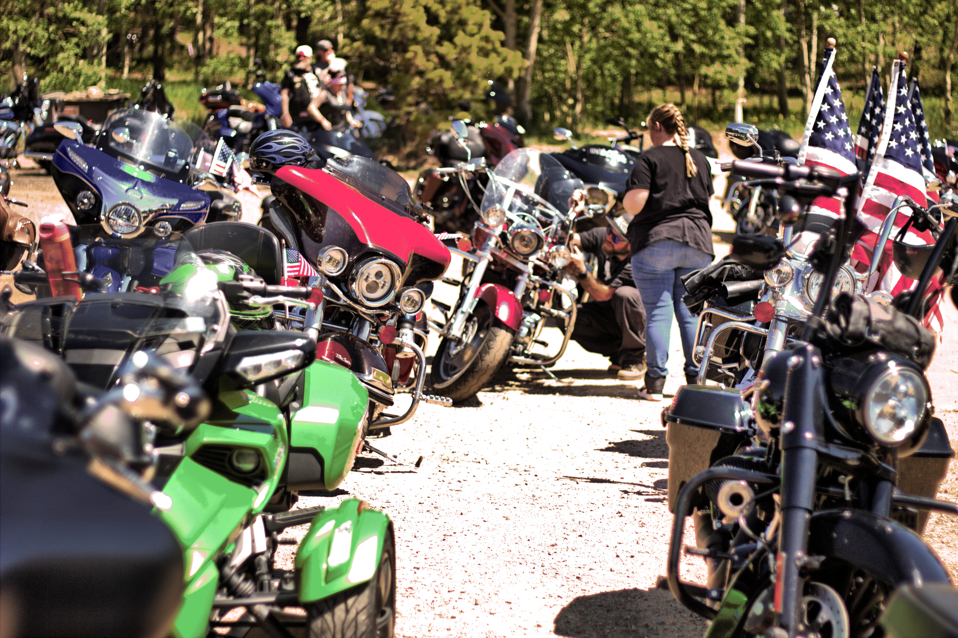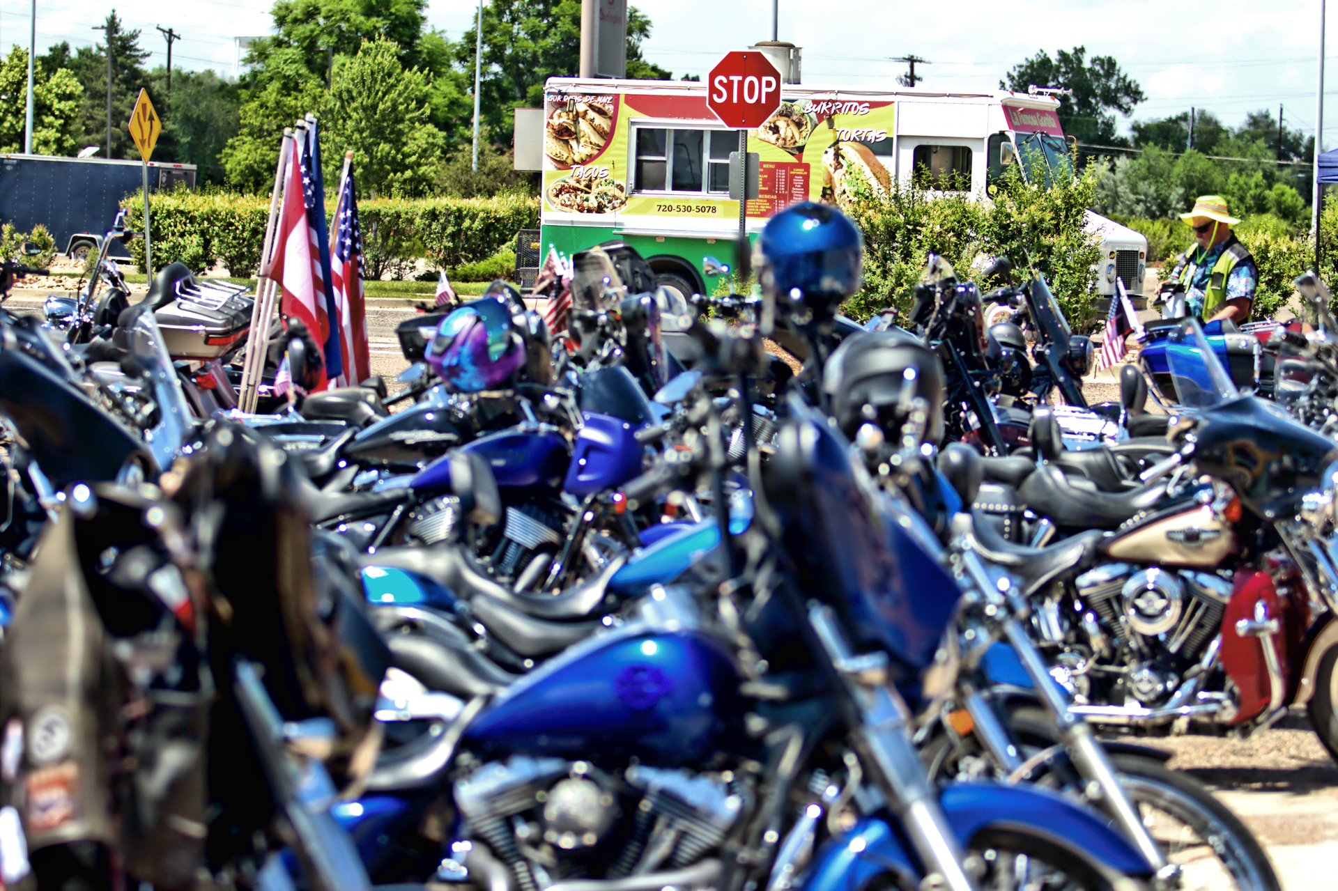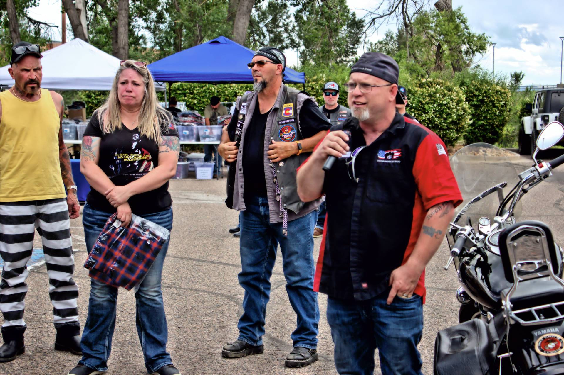 After registration, we heard Veronica Gallegos' beautiful A capella rendition of our National Anthem, followed by Ride Chaplain, Dave Stuht's warm prayer. The safety brief was then given and the ride quickly departed for it's only stop at Roy's Last Shot in Black Hawk. This year's ride included a full buffet lunch at Roy's for anyone who was interested.