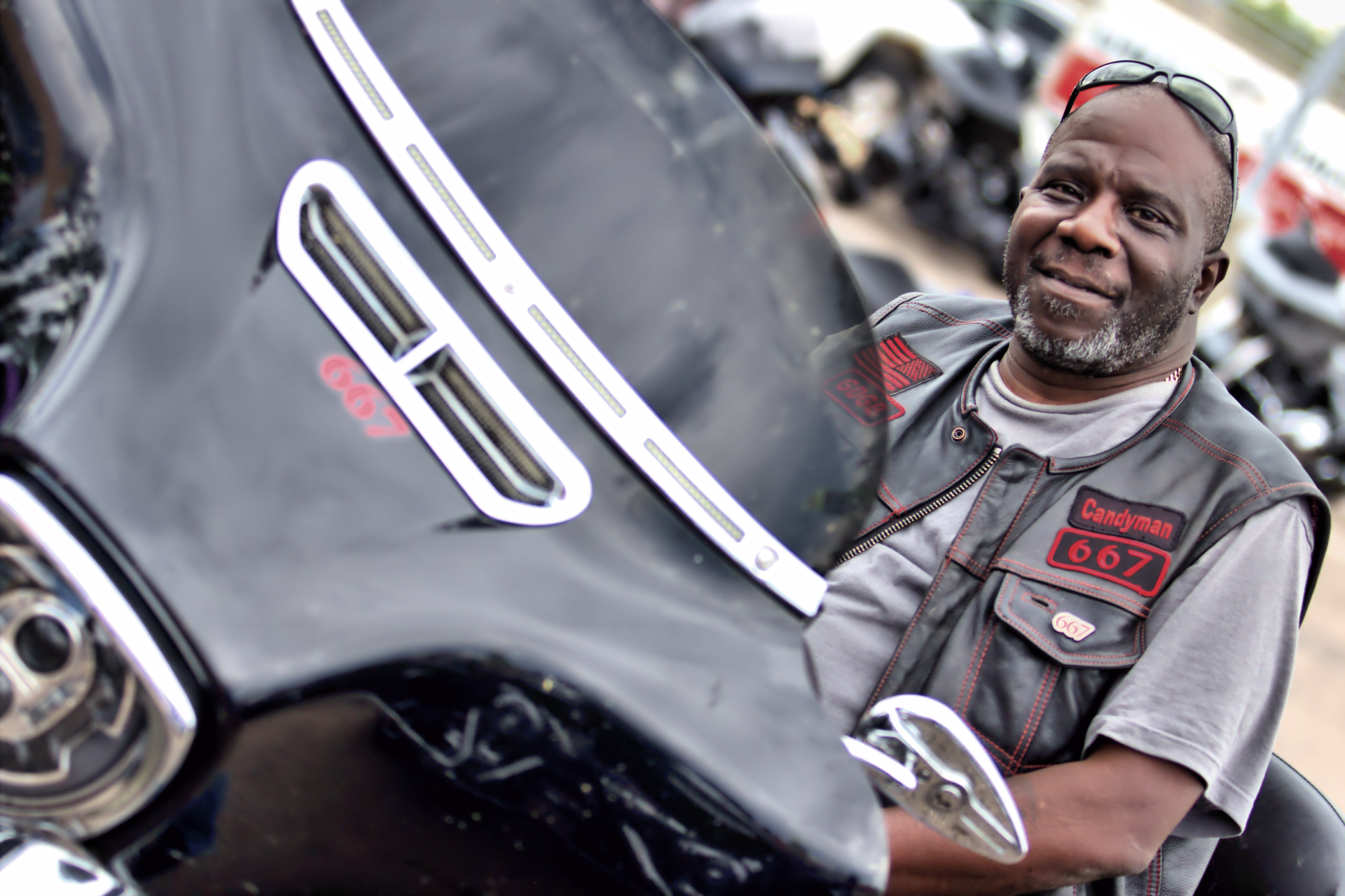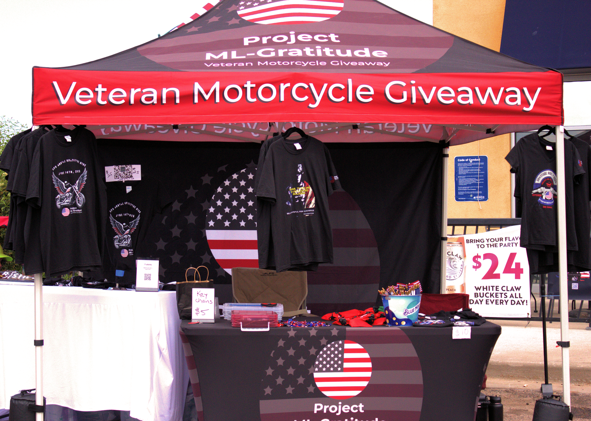 Then it came time to give away a motorcycle to our selected Veteran. Our recipient is a combat veteran who served with the Navy SEAL Teams. He was shot in the spine while on deployment in Iraq and was left paralyzed for many months. Fortunately he slowly recovered the use of his legs and continued serving. He completed ten more combat missions before retiring.