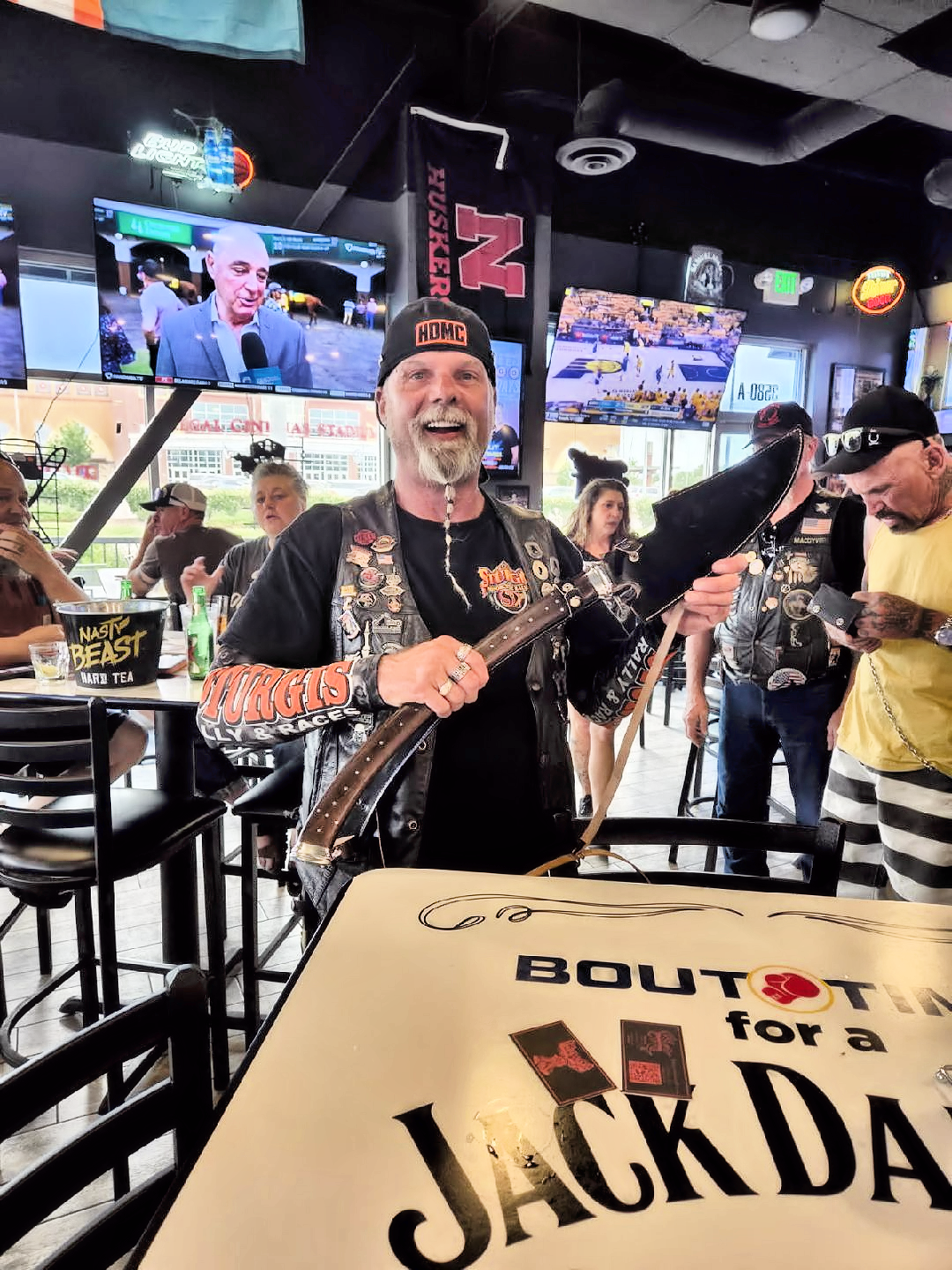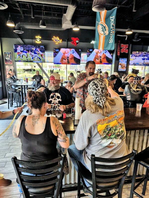 After the lunch stop at Roy's, everyone made their own way back to the final stop at Bout Time Pub & Grub in Sheridan. It turned out to be a decent place, although we packed that house. We had the team there in advance to set up for the final leg where we would award a 2003 Yamaha VStar 1100 to a select combat veteran.